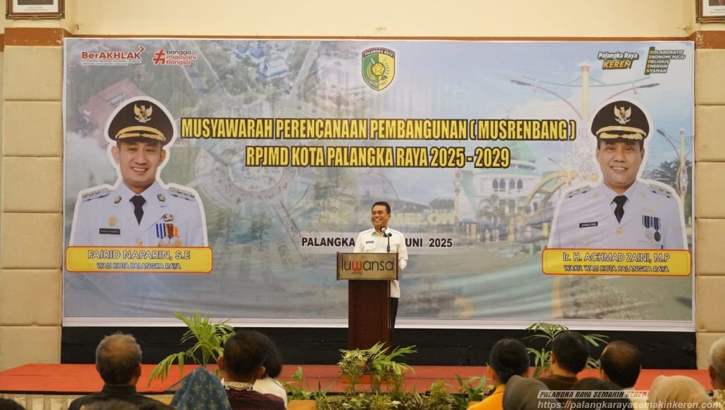 PALANGKA RAYA SEMAKIN KEREN โ Wali Kota Palangka Raya Fairid Naparin melalui Wakil Wali Kota Palangka Raya, Achmad Zaini, menegaskan pentingnya memperkuat sinergi antara program pembangunan daerah dengan kebijakan strategis nasional dalam mewujudkan kota yang lebih maju dan berkelanjutan. Hal ini disampaikan saat membuka Musyawarah Perencanaan Pembangunan (Musrenbang) RPJMD Kota Palangka Raya Tahun 2025โ2029 yang berlangsung di Ballroom Hotel Luwansa, Rabu, (4/6/2025).